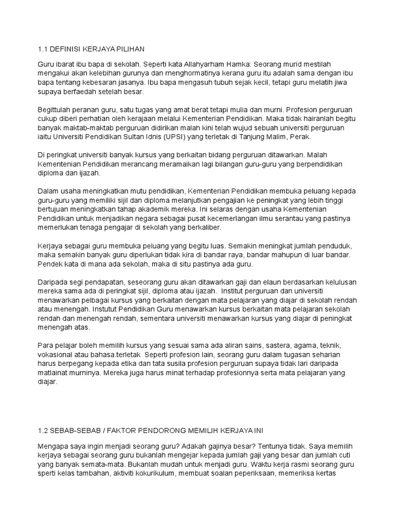 Refleksi Mengapa Saya Memilih Profesion Perguruan Sebagai Bidang Kerjaya Pdf
